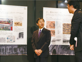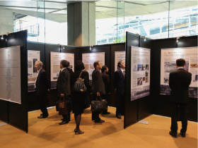 - 一年間という短い期間ではあったが、省庁、博物館、企業、研究者などからの幅広い協力を得て、なんとか完成にこぎ着けることができた。この場を借りて、関係者には御礼申し上げたい。幸い式典当日には、多くの方々にパネルを見てもらうことができ(写真5)、映像についてもホールの大画面での上映が実現した。さらに、皇太子殿下からは展示品についていくつかご質問をいただくなど、ご関心を寄せていただいたことは幸甚の至りである。なお、これら展示パネルと映像は、今後、学会の他のイベントでも使用できるよう、少し手を加えた上で保管する予定である。