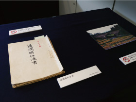 展示(図面とパネル)と映像の概要について述べる。まず図面については、橋の技術と計画・設計のプロセスを示すことを意図して、アーチ橋と可動橋の図面を展示した。アーチ橋については、江戸末期から昭和前期にかけてのアーチ技術の変遷を示すために、半円アーチの通潤橋(熊本県)、欠円アーチの日本橋(東京都)、変垂曲線アーチの萬代橋(新潟県)という、各時代を代表する大規模アーチ橋を取り上げた。また可動橋については、勝鬨橋(東京都)の比較検討図面と長浜大橋(愛媛県)の図面および計算書を取り上げ、その計画・設計過程の一端を説明した。なお、これらの橋梁はすべて重要文化財であり、すでに「土木コレクションHANDS+EYES」に採録されている萬代橋、勝鬨橋、長浜大橋の図面に加えて、通潤橋の工法を詳細に記した「通潤橋仕法書」(写真1)、断面図や図式解法による応力計算図を含む日本橋の図面(写真2)、増田淳事務所による英文の長浜大橋計算書を展示した。