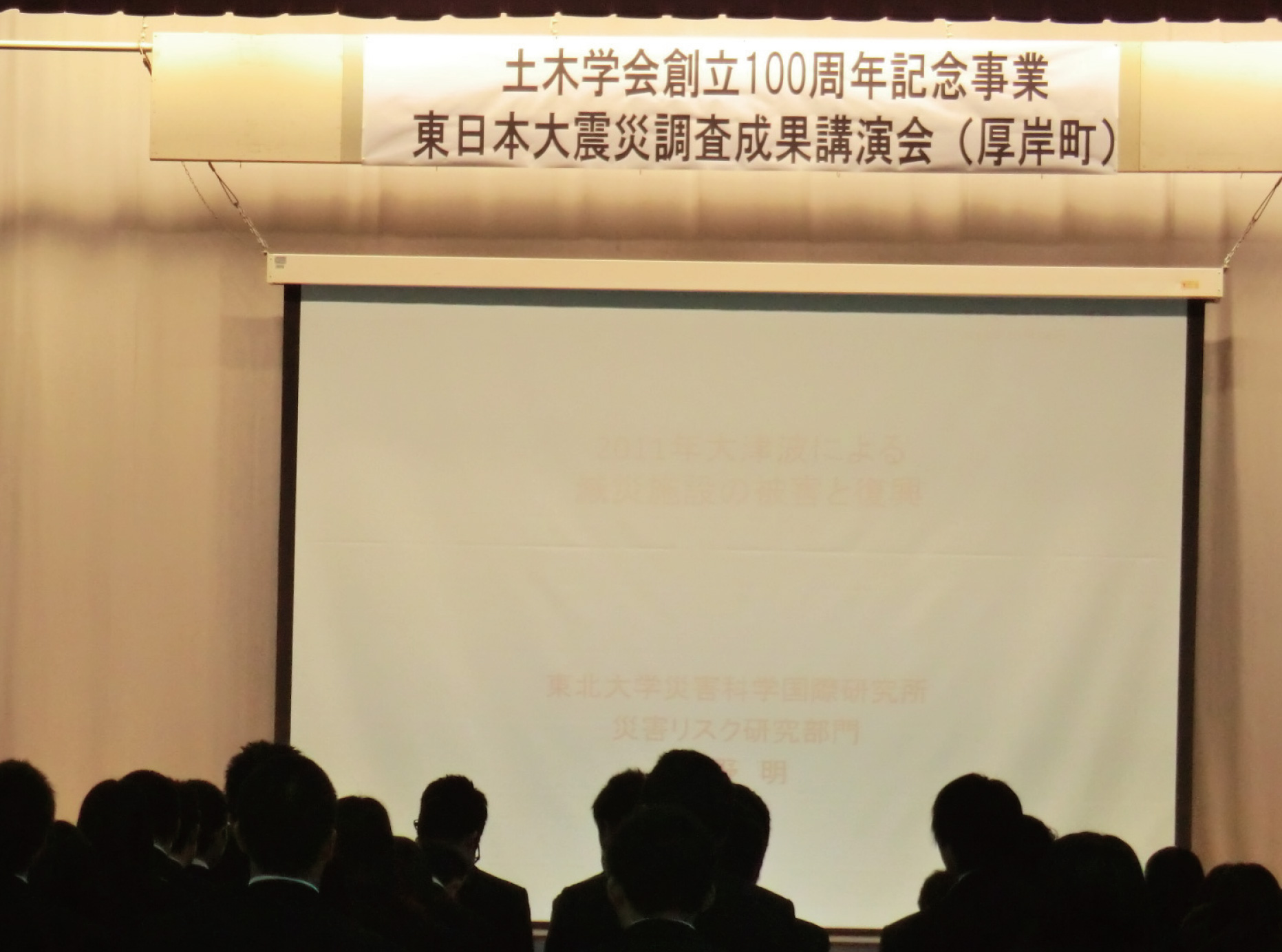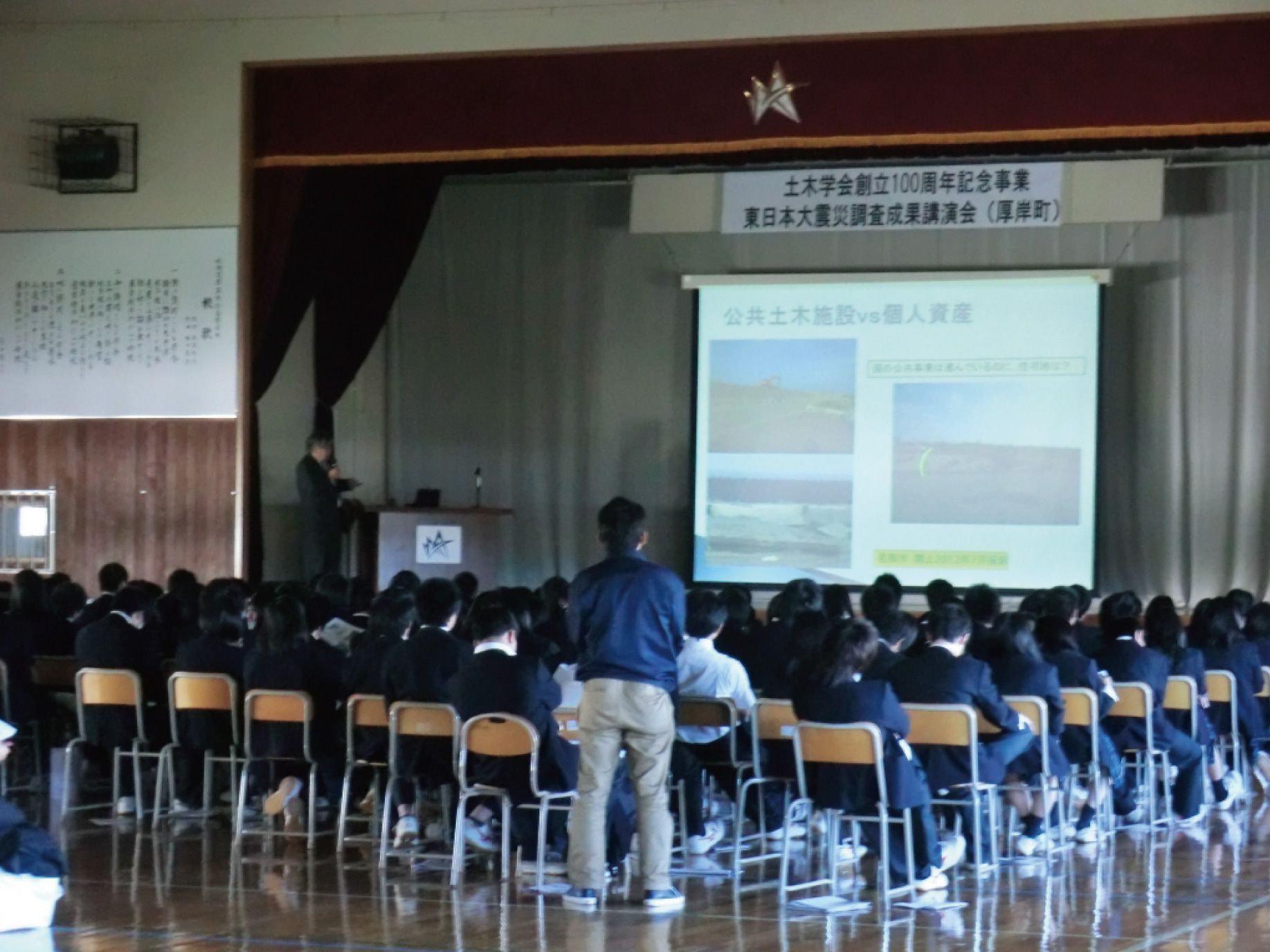 北海道厚岸翔洋高等学校 体育館において「東日本大震災調査成果講演会」を開催いたしました。
