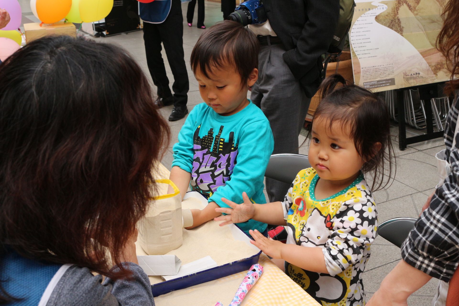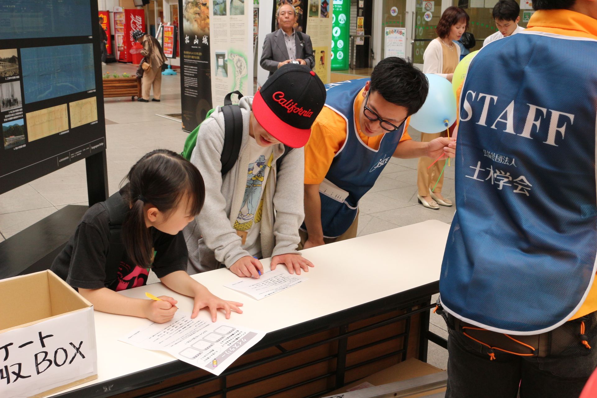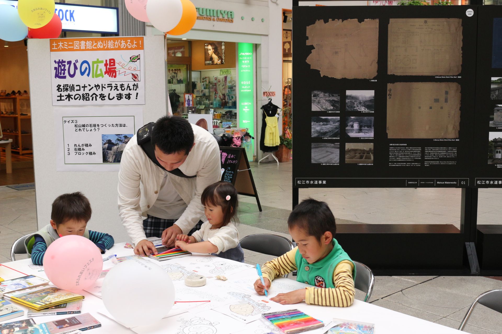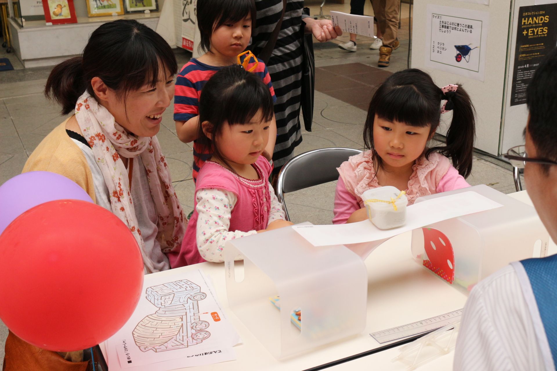 通りすがりの親子連れに大好評だった「ふれあいフェスタ」では、子どもたちがトンネルの強さの秘密を興味深く勉強し、クイズラリーを楽しんでいました。
