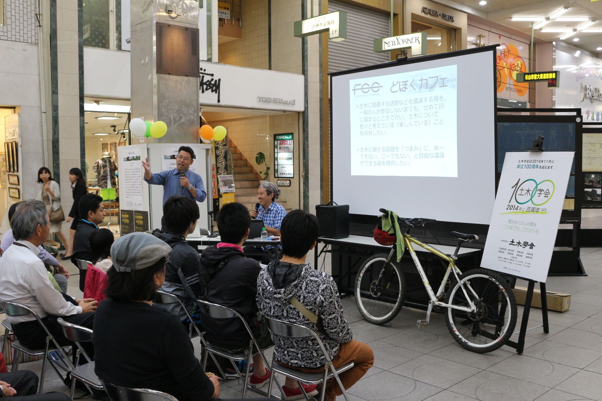 オブローダー(道路趣味者の中でも特に廃道を好んで探索・調査する人)の第一人者、平山義之さんを迎えて開催した「どぼくカフェ」では、「廃道」をテーマにお話しいただき、初めて耳にする話に道行く皆さまが立ち止まって参加してくださいました。
