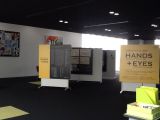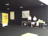 壁に絵画などが飾られている素敵な多目的スペースをお貸出しいただき、土木コレクションのパネルとの相性もバッチリでした。