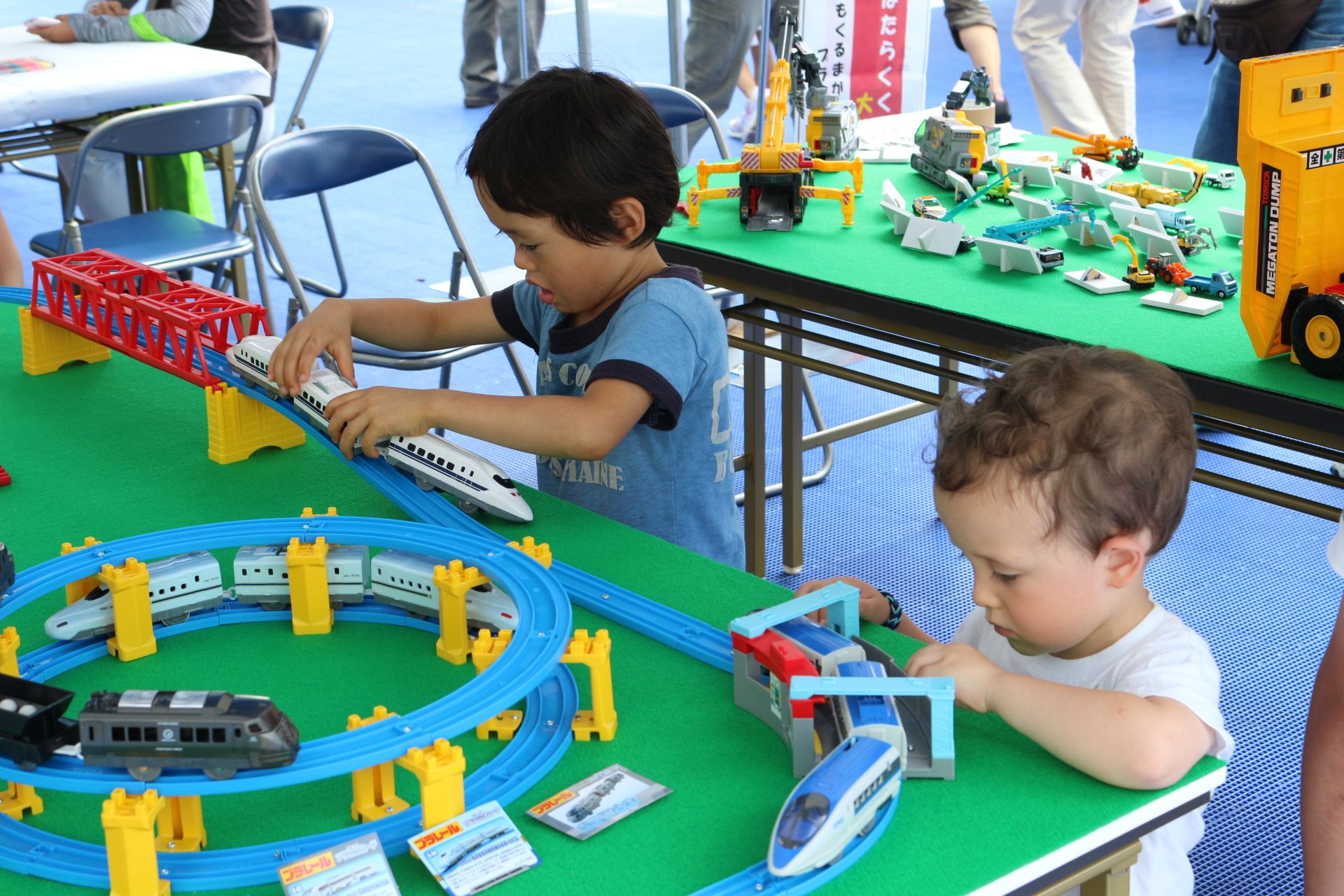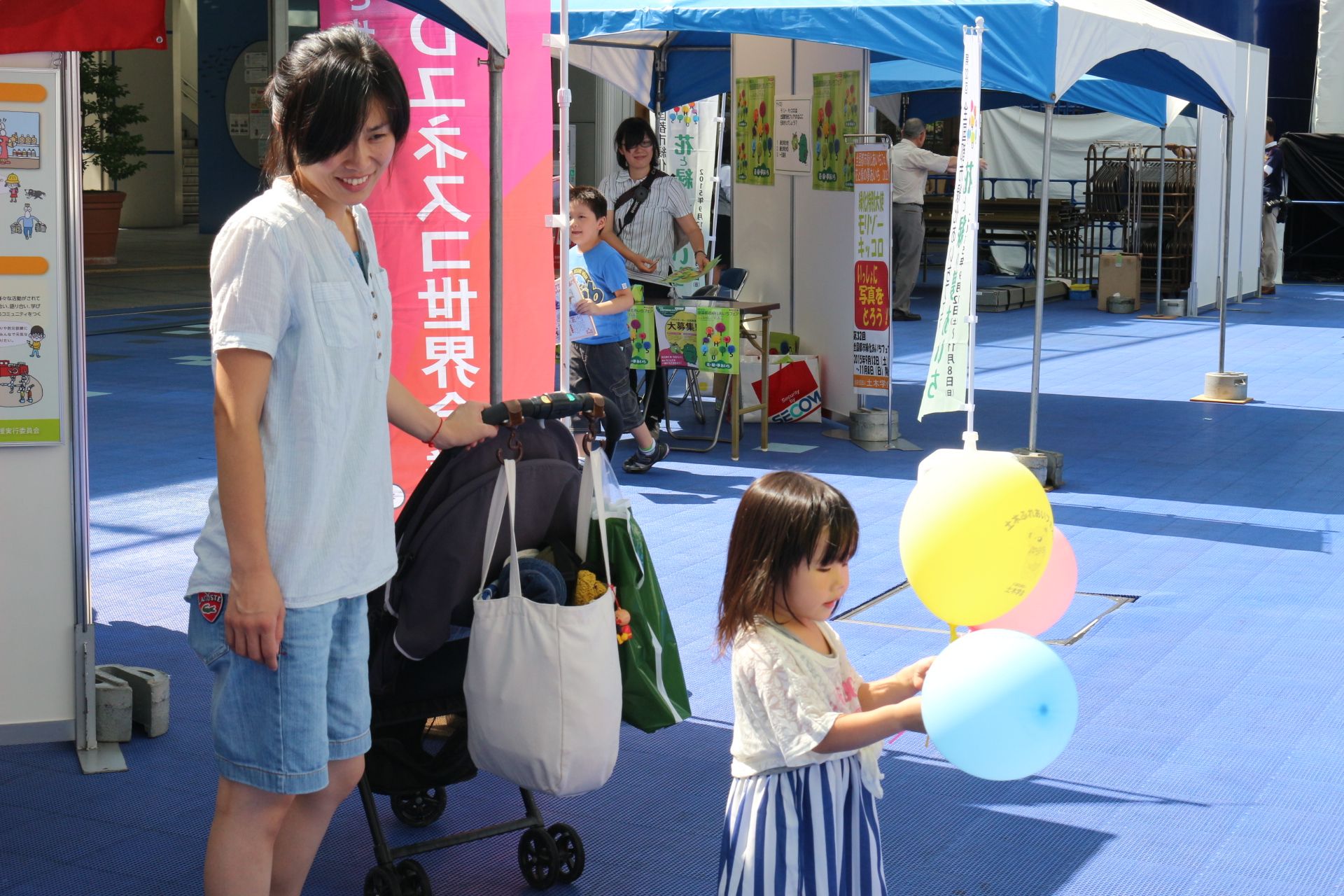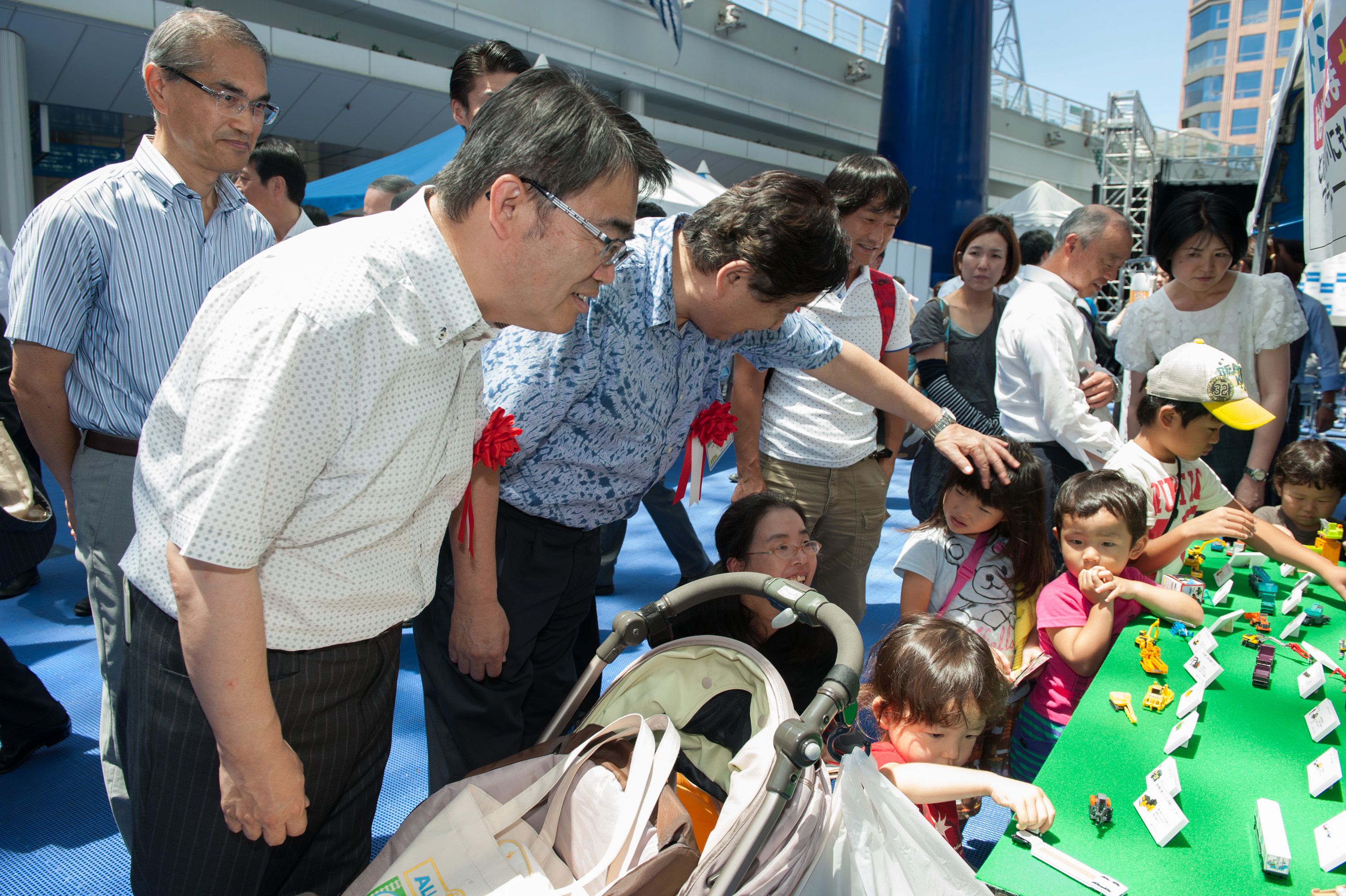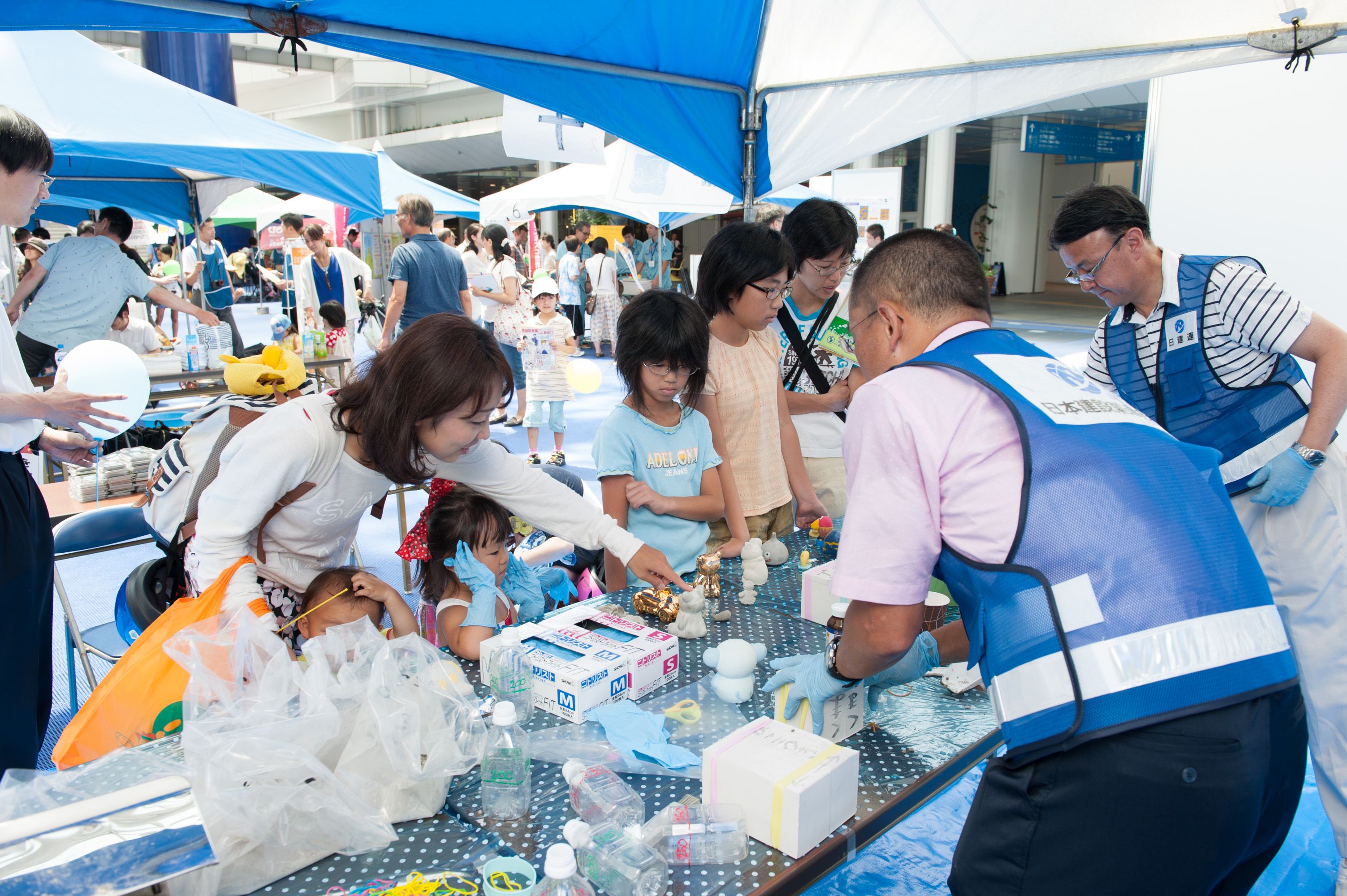 平日の開催でしたが、夏休みということもあって、「土木ふれあいフェスタ」コーナーでは、クイズラリーや体験広場を楽しむ親子連れの姿が多数見られました。「土のうづくり体験」や「はたらくくるま」コーナー、地震の液状化のしくみを学べるコーナー、など、子ども達は遊びを通じて目を輝かせて楽しく学んでいました。