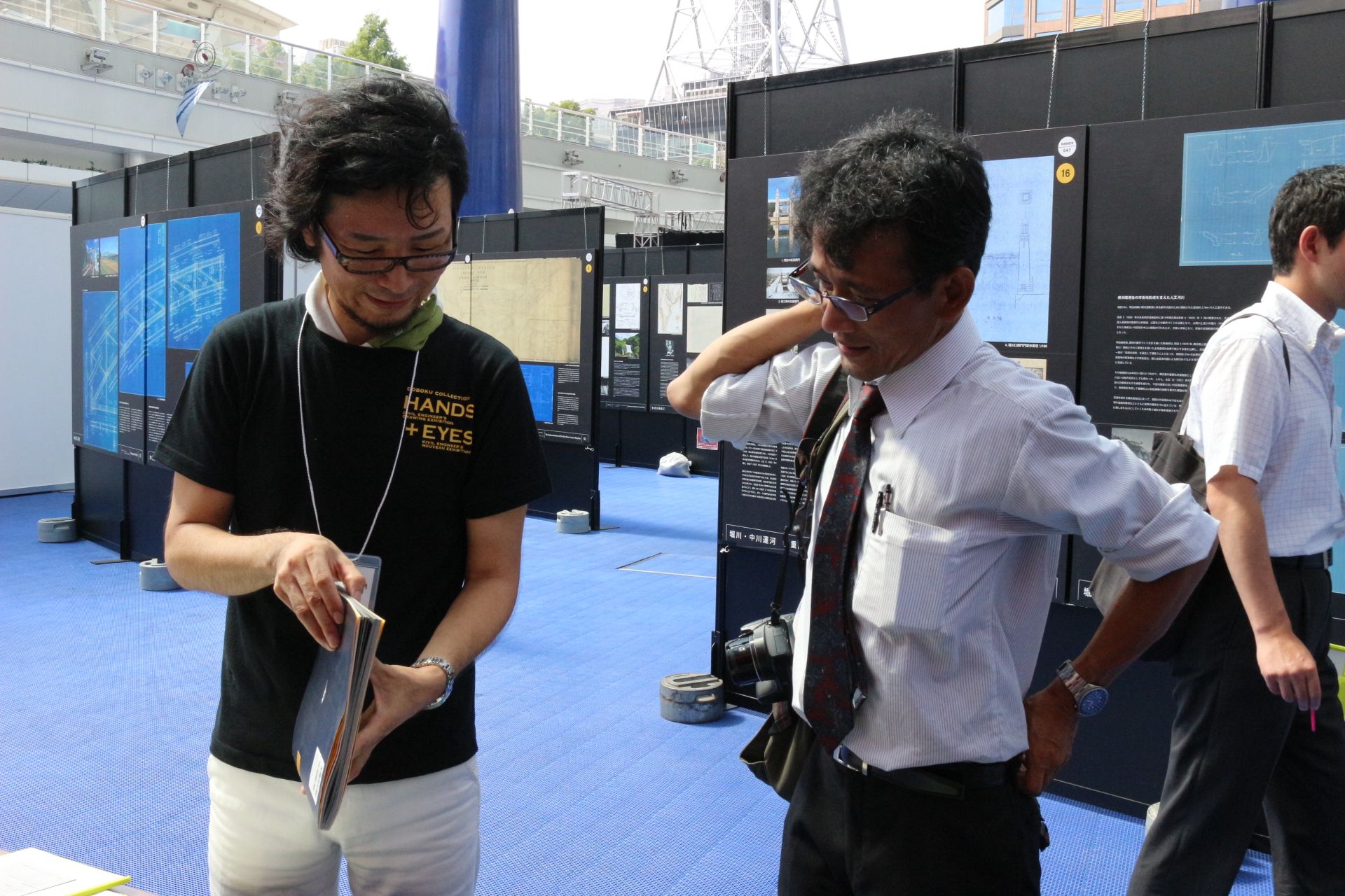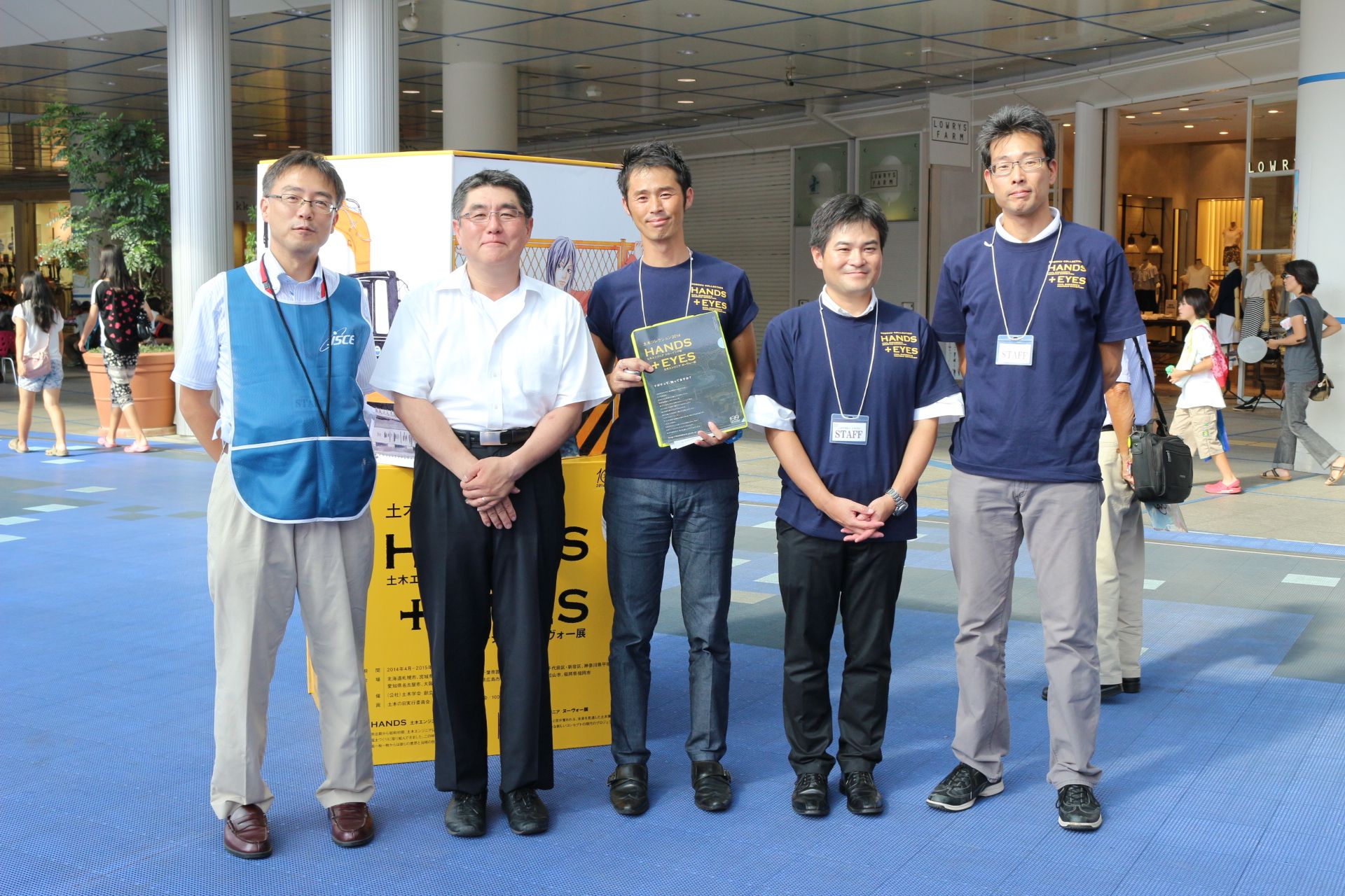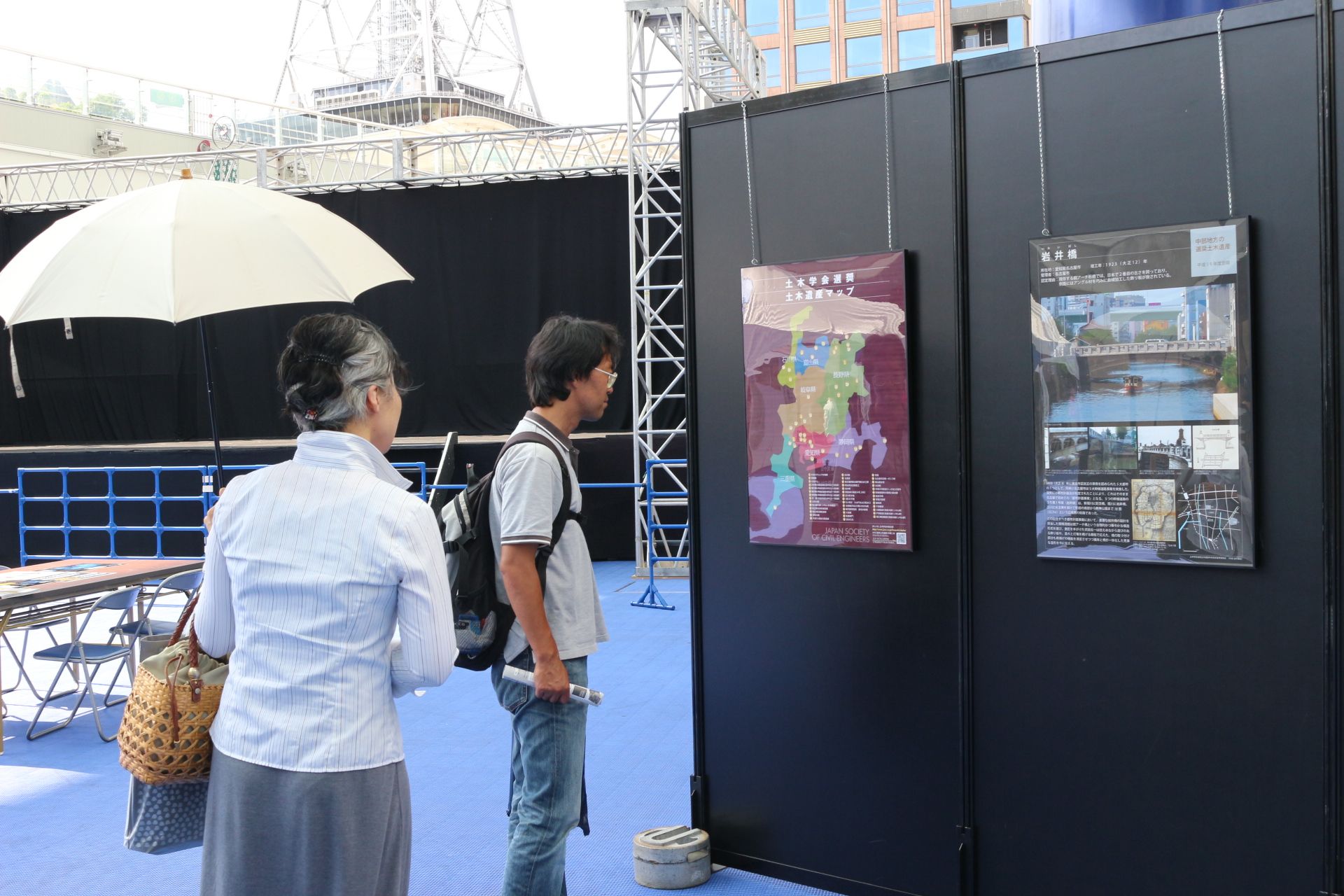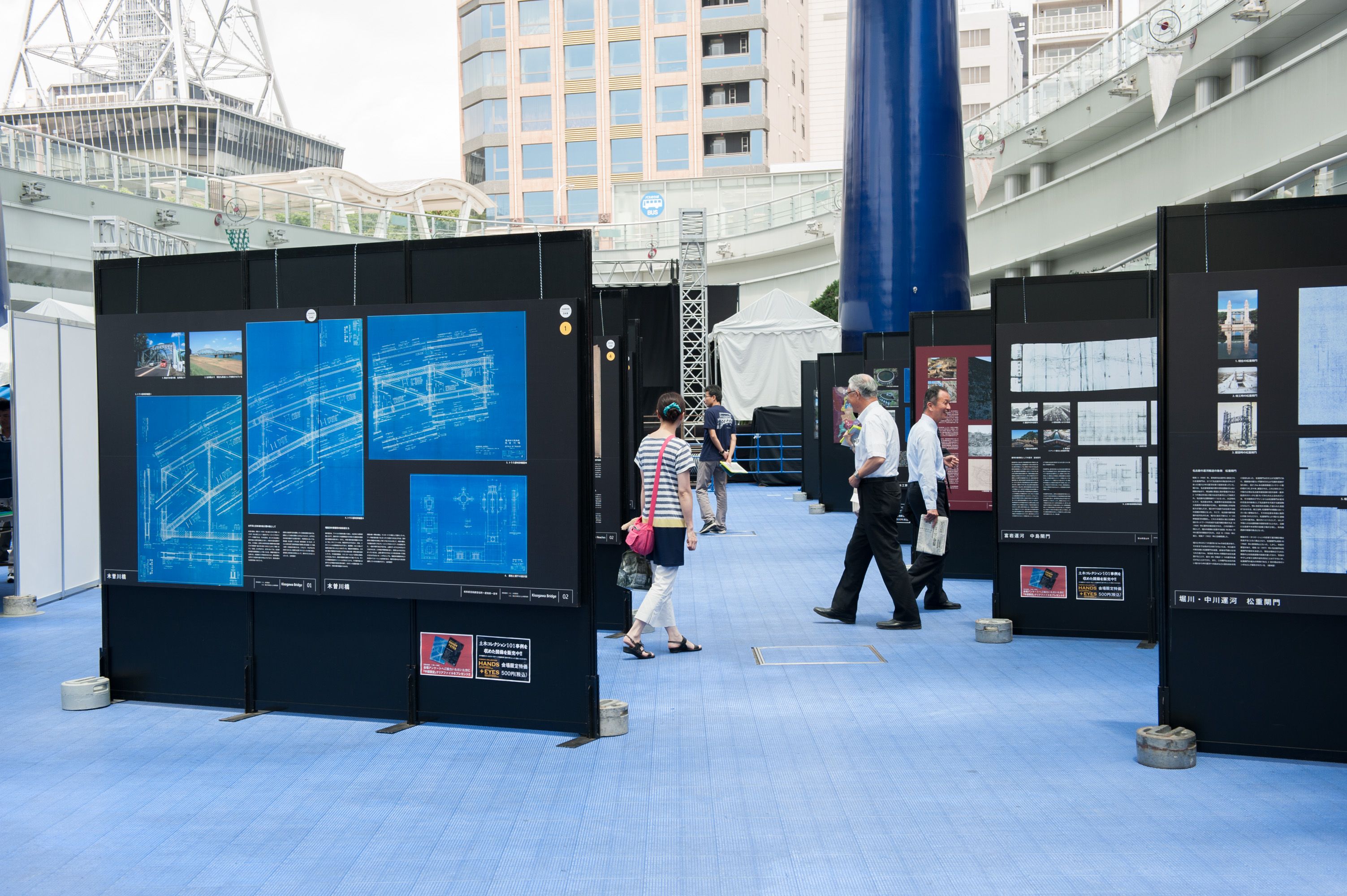 土木コレクションHANDS+EYES は中部エリアを中心に、29の事例を展示しました。今回は中部支部の『選奨土木遺産』のパネルも同時展示しました。「名古屋の事例はどれ?」「FBいいね!してます」「学会誌を見て来ました」等々、反響のお声をたくさんいただきました。スタッフも、木曽川橋をプリントした揃いの自主制作Tシャツも好評で、かっこいいとお褒めの言葉もいただきました。