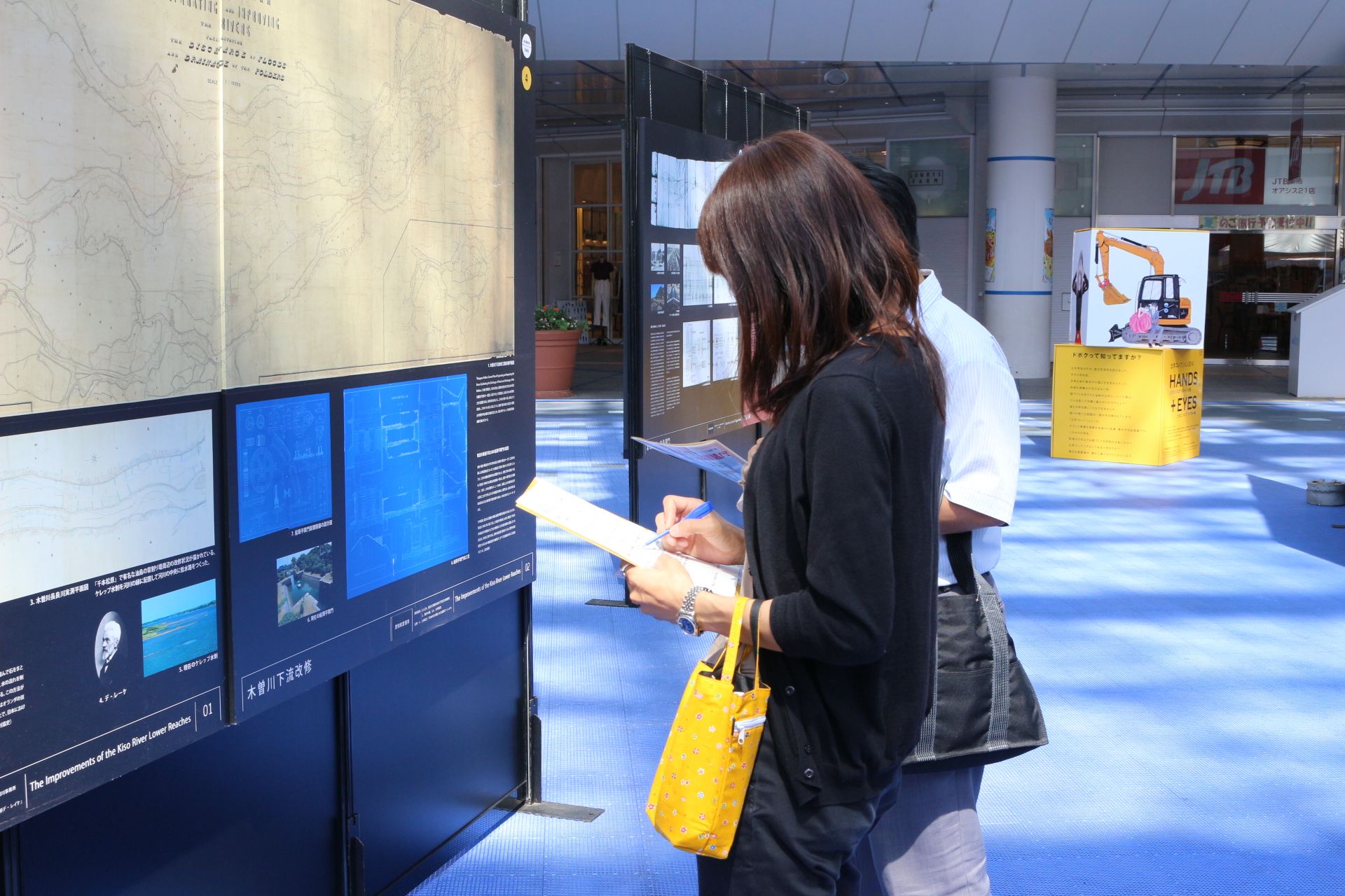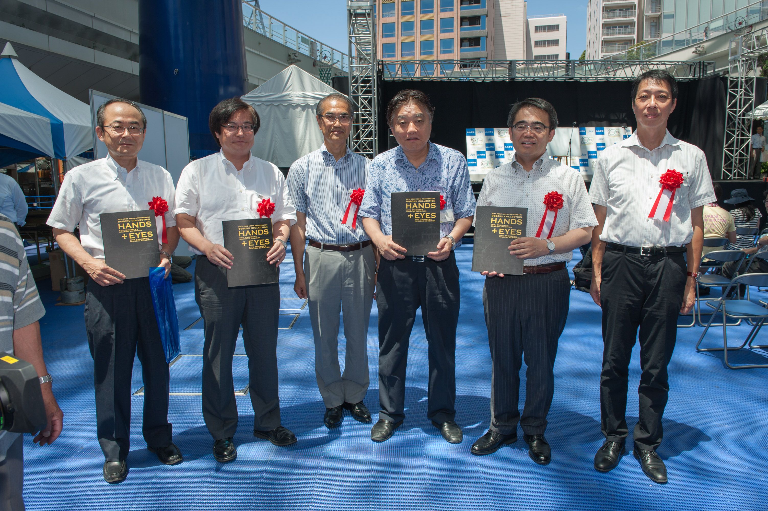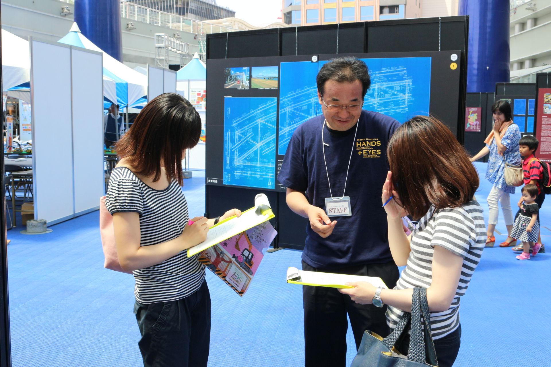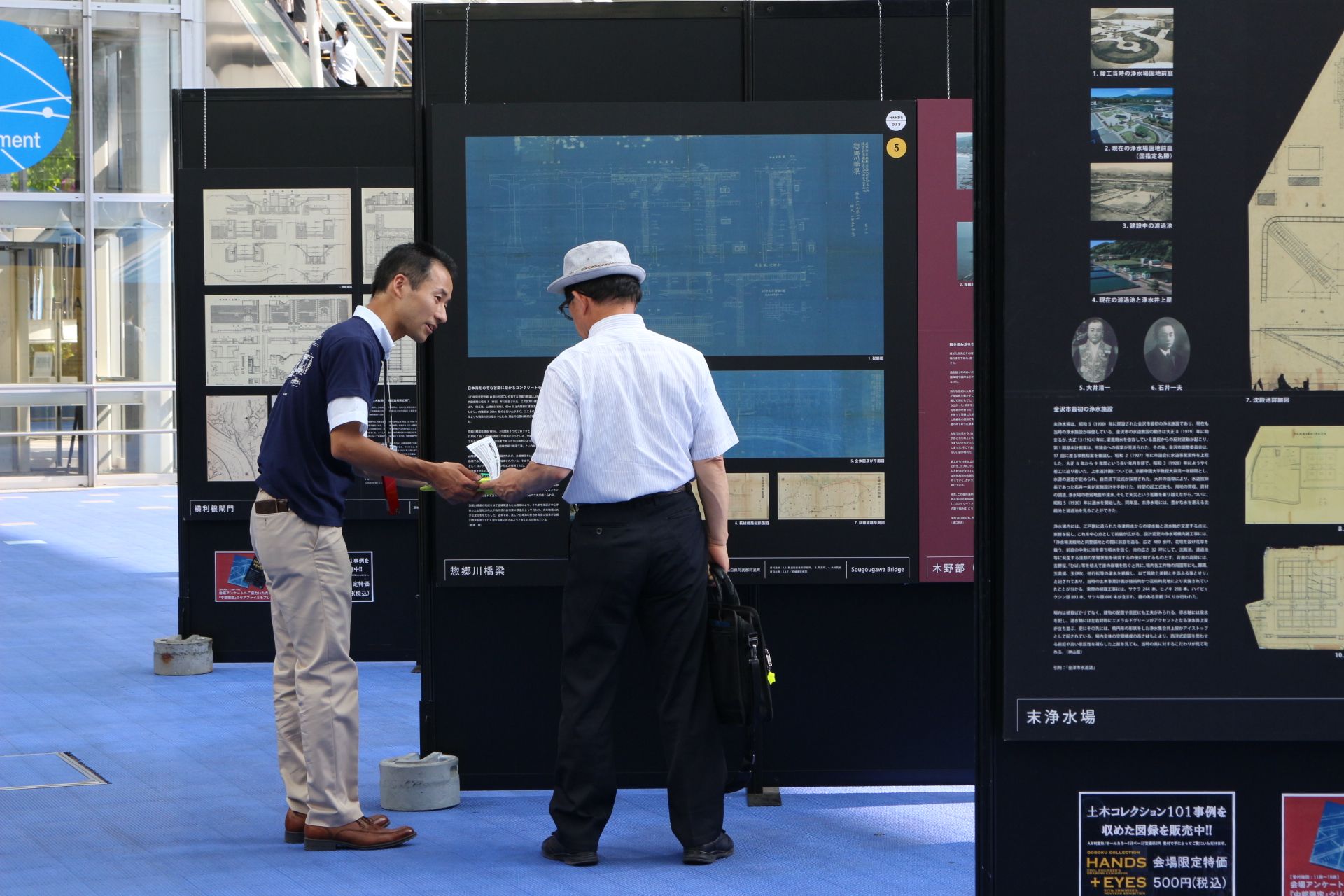 土木コレクションHANDS+EYES は中部エリアを中心に、29の事例を展示しました。今回は中部支部の『選奨土木遺産』のパネルも同時展示しました。「名古屋の事例はどれ?」「FBいいね!してます」「学会誌を見て来ました」等々、反響のお声をたくさんいただきました。スタッフも、木曽川橋をプリントした揃いの自主制作Tシャツも好評で、かっこいいとお褒めの言葉もいただきました。