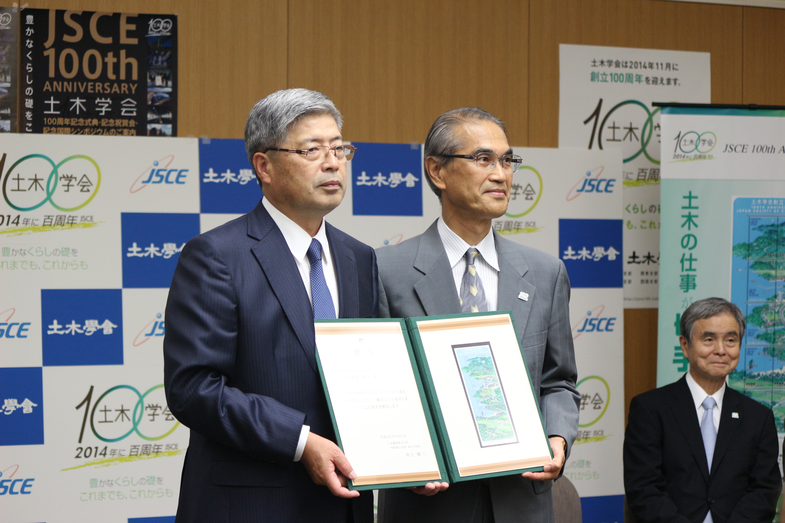 2014-09-01【写真リポート】特殊切手「土木学会創立100周年」の贈呈式が開催されました。