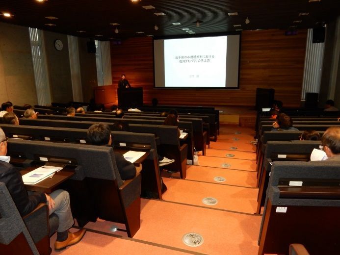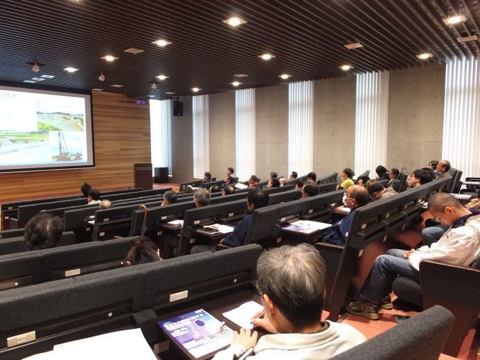 菊地岩手県土木部長からは、岩手県沿岸被災地域の被害状況,復興計画,復興状況,復興教育や観光による復興に関する情報の紹介がありました。山本准教授からは、東日本大震災当時の地震動に関する話題と揺れやすさを探る手法や成果についての研究報告がありました。小山田准教授は、津波によるコンクリート構造物の破壊についての状況説明・解説と震災瓦礫の有効利用の取り組みについて報告しました。三宅准教授からは、小規模漁村における地域の特徴や居住地・公共施設等の移転先についての活動報告がありました。