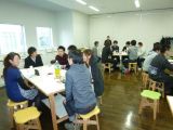 休憩をはさみ後半1時間では、学生を3つのグループに分けて、各講師の3つのテーブ ルで、お茶を飲みながらざっくばらんに意見交換を行った。講師3 人ともが秋田大学の卒業生ということもあり、どのテーブルでも話が盛り上がっていた。15分ずつグループを入れ替えて、すべてのグループがすべての講師と意見交換できるようにしてみたが、なかなか話が尽きず、15分では時間が足りないくらいの充実した意見交換ができたようだ。 最後に、各講師と学生グループの代表から意見を聞いたが、講師の側は学生たちが自分の未来に向けて色々と深く考えていることに感心したようであり、学生の側は、実際に土木の各分野で仕事をしている先輩方から直接に具体的な話を聞いたことで、思いがけず刺激を受け、将来に対して真剣な気持ちを抱いたようである。