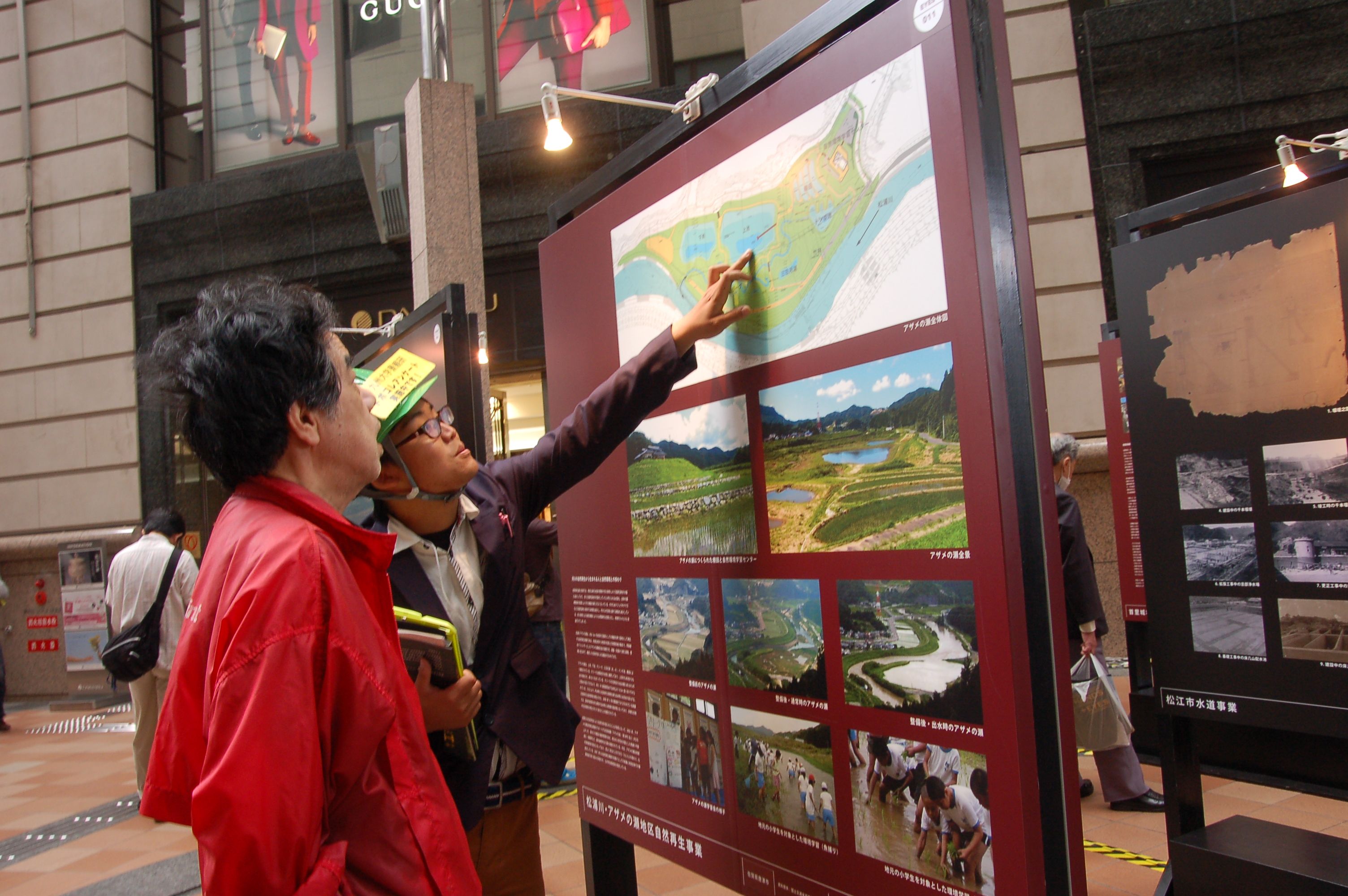 パサージュ広場はデパートの建物に挟まれた賑やかな公共通路です。通りがかりの一般市民の方々が多数足を止めてくださり、来場者総数は約3000人に達しました。また、地元の学生の皆さんの力を借りて実施したアンケートには777人の方が答えてくださいました。学生の皆さん、そして会場の確保・設営他で頑張ってくださった西部支部の皆さん、大変お疲れさまでした!