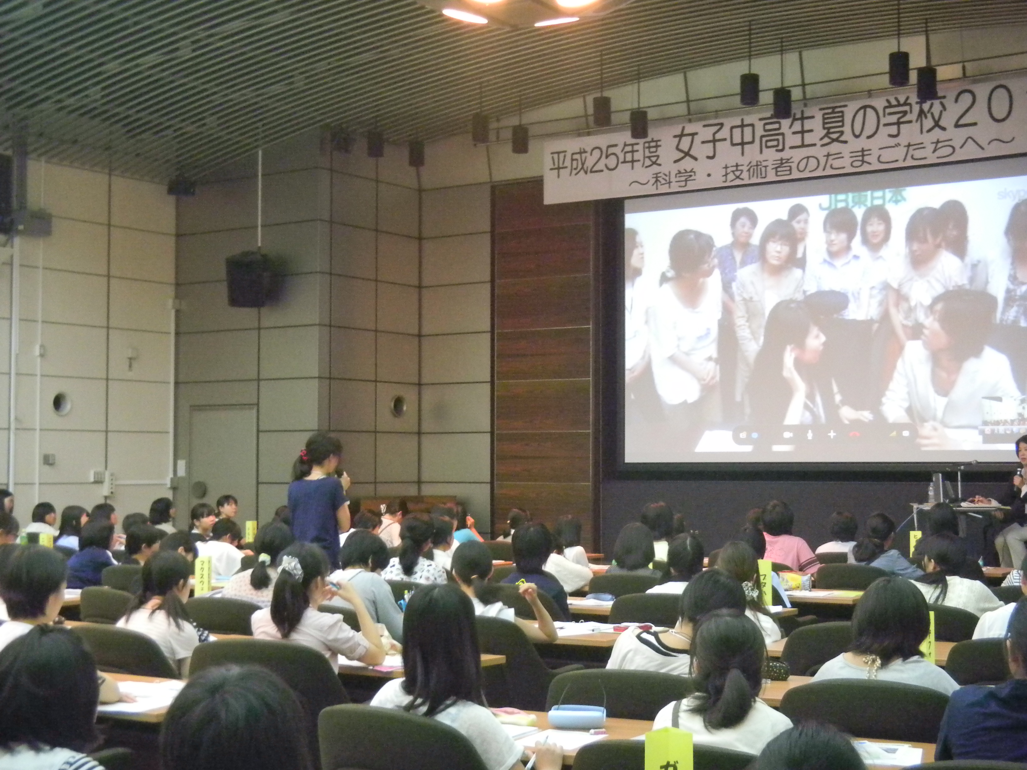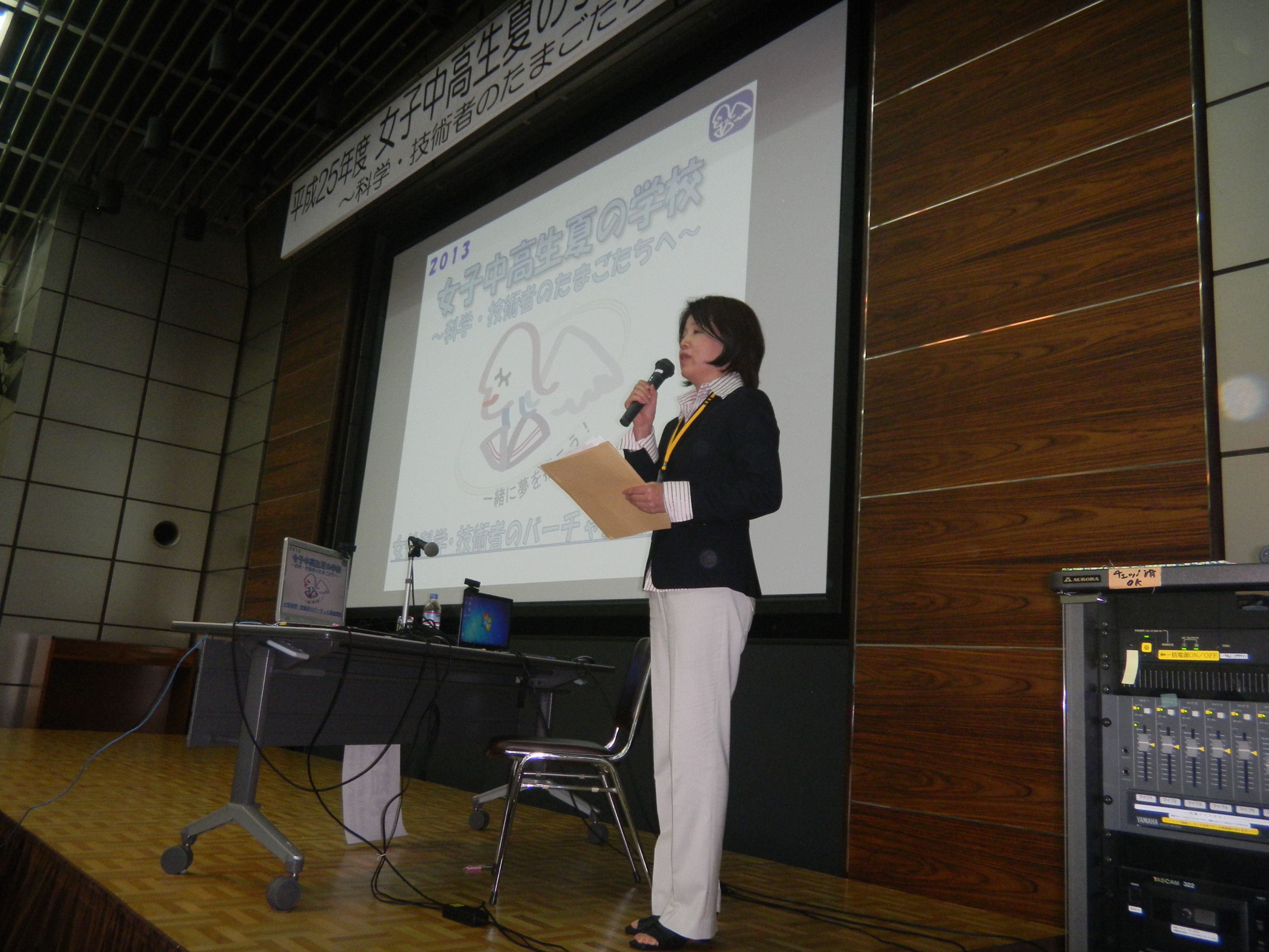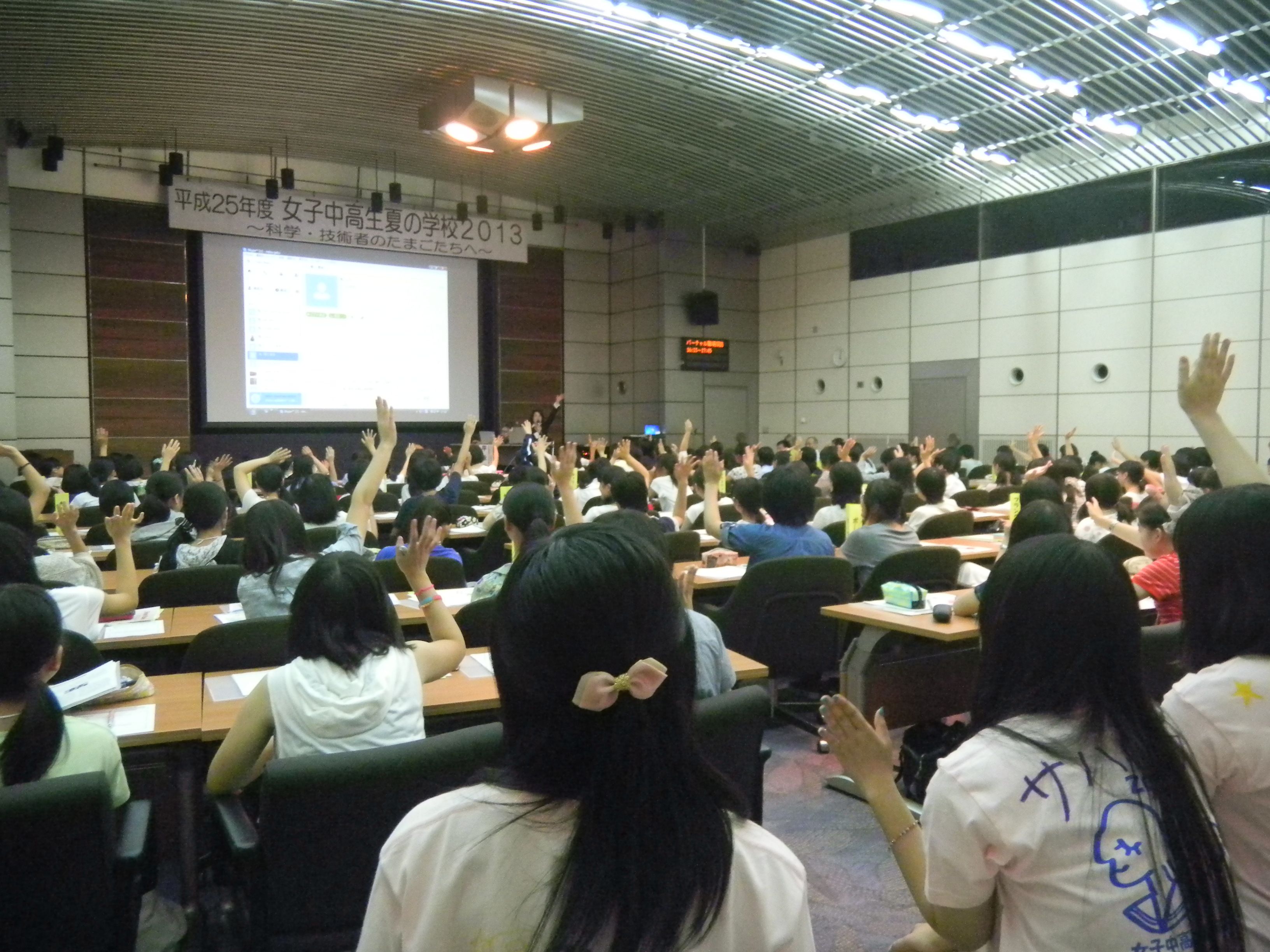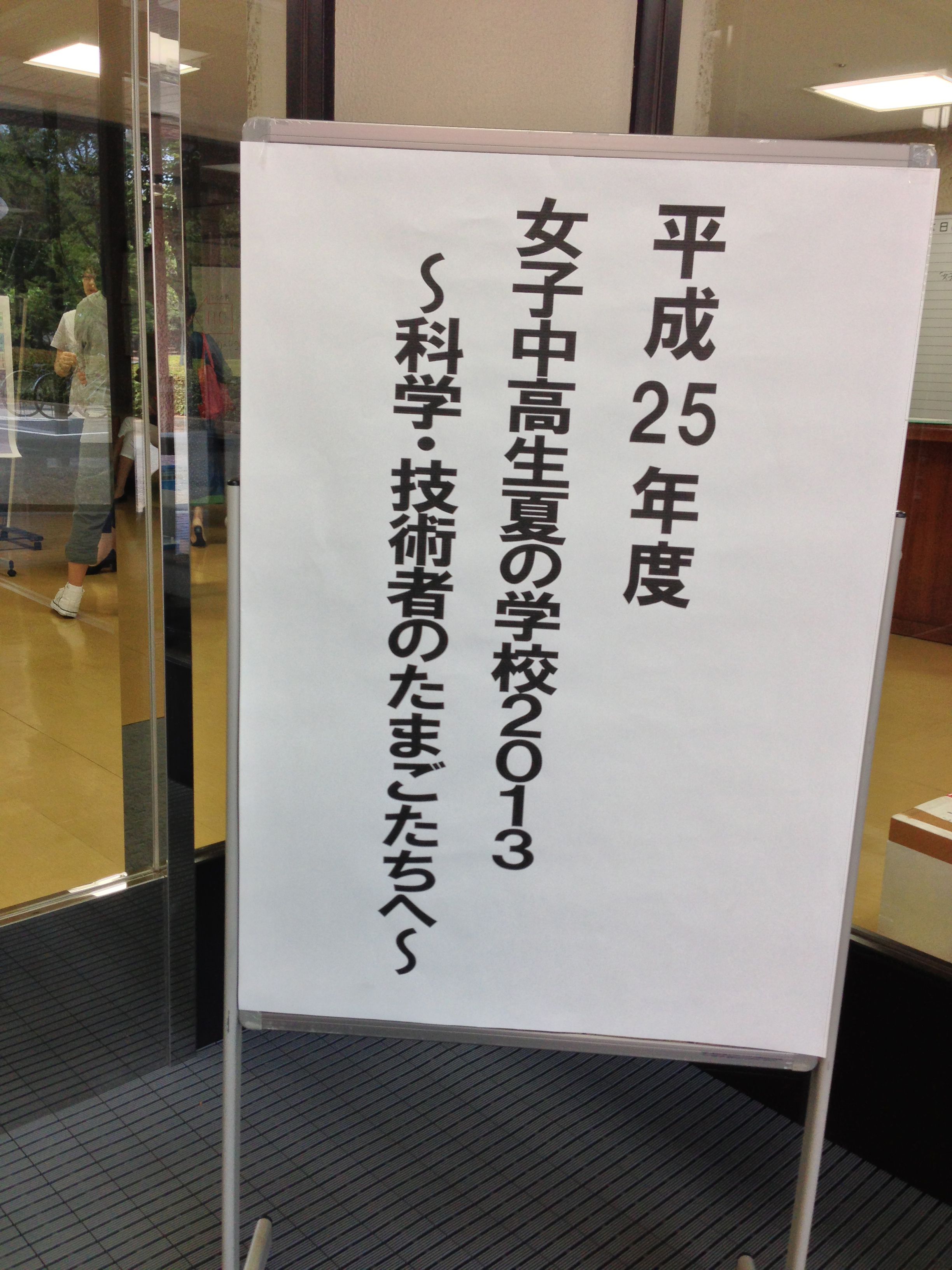 8月8日~10日の3日間、国立女性教育会館において「女子中高生夏の学校 2013~科学・技術者のたまごたちへ~」(以下、夏学)が開催されました。夏学は、科学技術の世界を体験し、活躍する女性たちと交流し、仲間や先輩と知り合う機会を、女子中高生に提供することを目的として2005年より開催されています。今年は全国から約130名の女子中高生と、保護者・教員、そして多数のスタッフが参加しました。