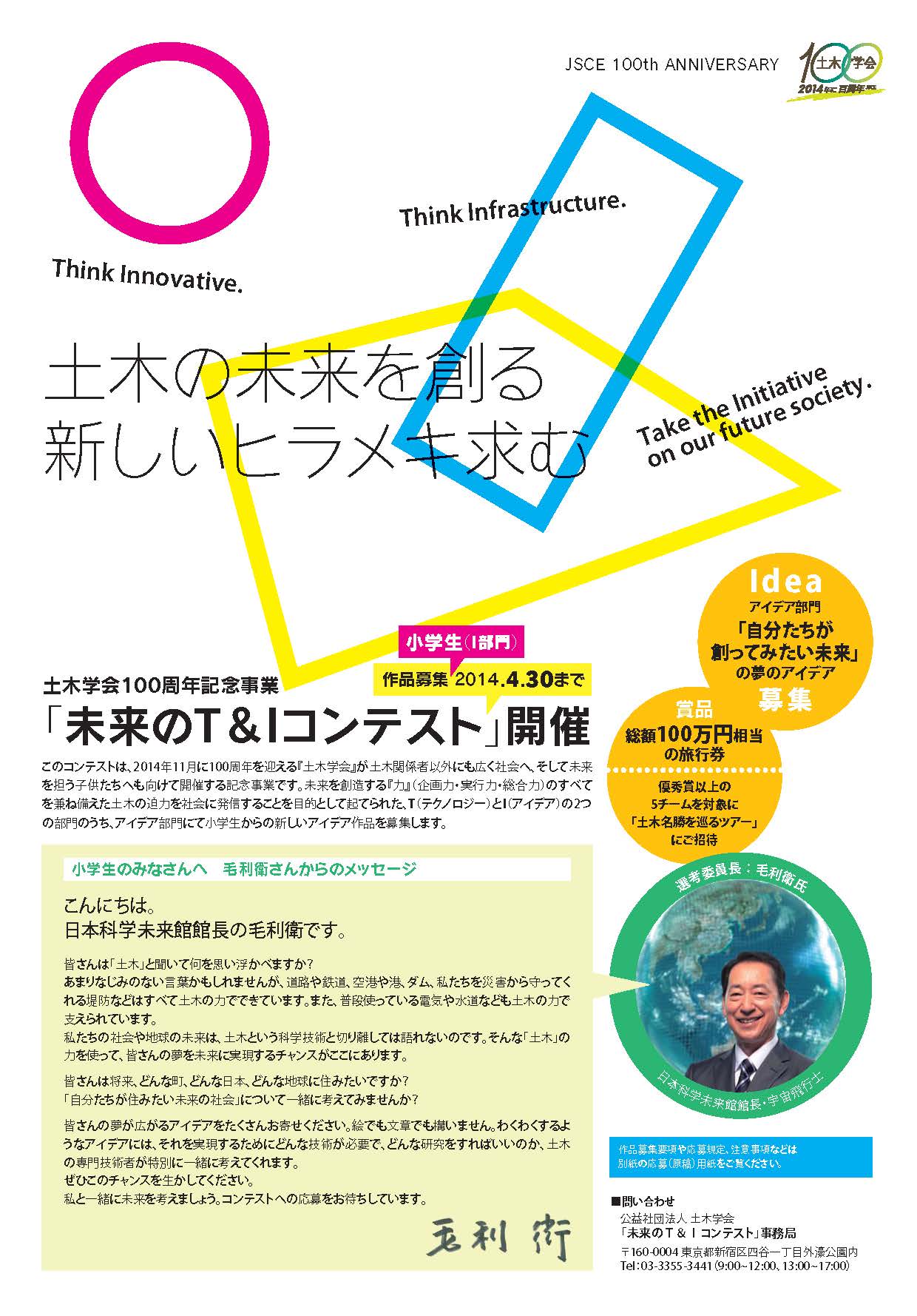 【100周年記念事業】未来のT&Iコンテスト 毛利衛 審査委員長他決まる