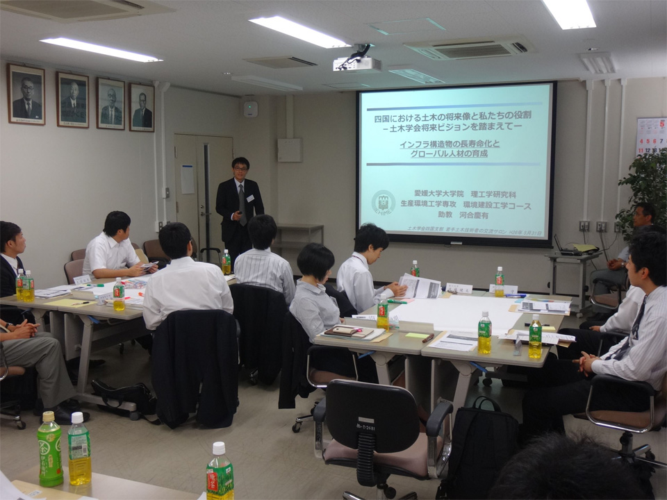 四国支部は、100周年事業実行委員会の支援のもと、「平成26年度年次技術研究発表会」と同日の5月31日(土)に徳島大学工学部建設工学科セミナー室において「若手技術者の交流サロン」を開催しました。