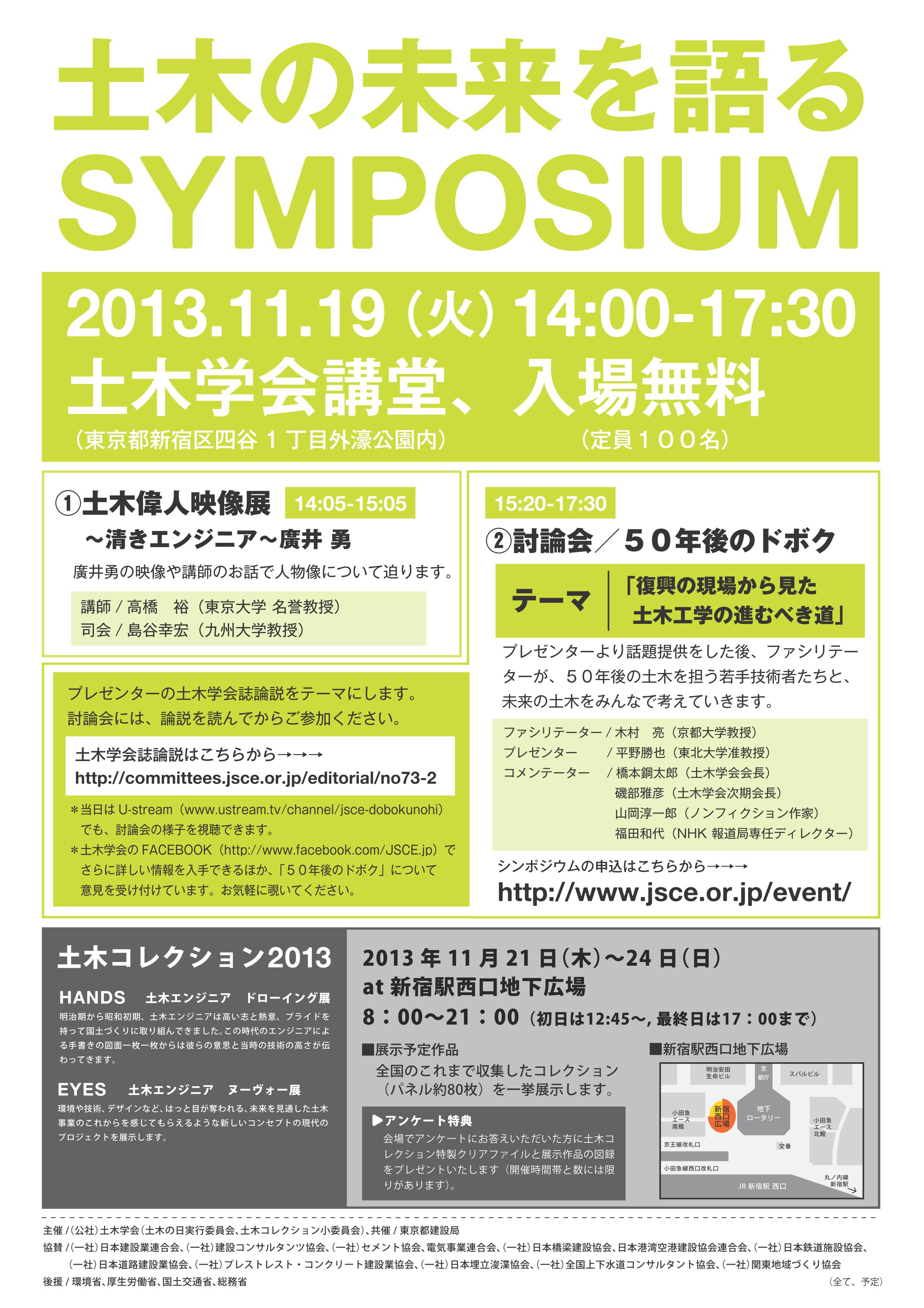 2013/11/19 14:00~ 『土木の未来を語るシンポジウム』を U‐streamで配信します!